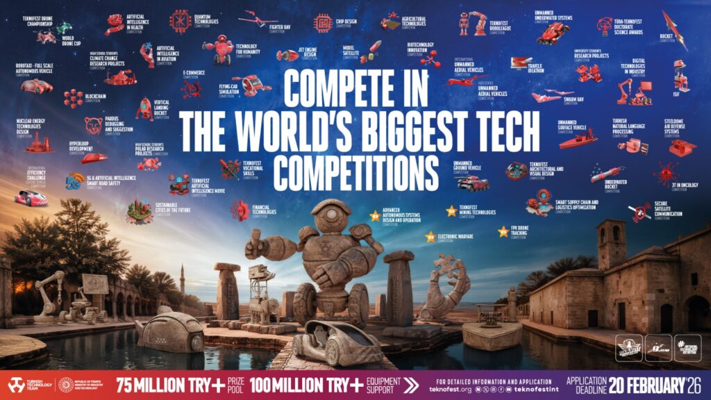 „წელს ქალაქი შანლიურფა უმასპინძლებს TEKNOFEST 2026-ს- ავიაციის, კოსმოსისა და ტექნოლოგიების ფესტივალს, რომლის კონკურსებისთვისაც განაცხადების მიღება უკვე დაიწყო. კონკურსები გათვალისწინებულია განათლების ყველა საფეხურის ახალგაზრდებისთვის — საშუალო სკოლიდან მაგისტრატურის ჩათვლით, ამასთანავე, სტარტაპებსაც ექნებათ შესაძლებლობა წარმოაჩინონ საკუთარი უნარები.